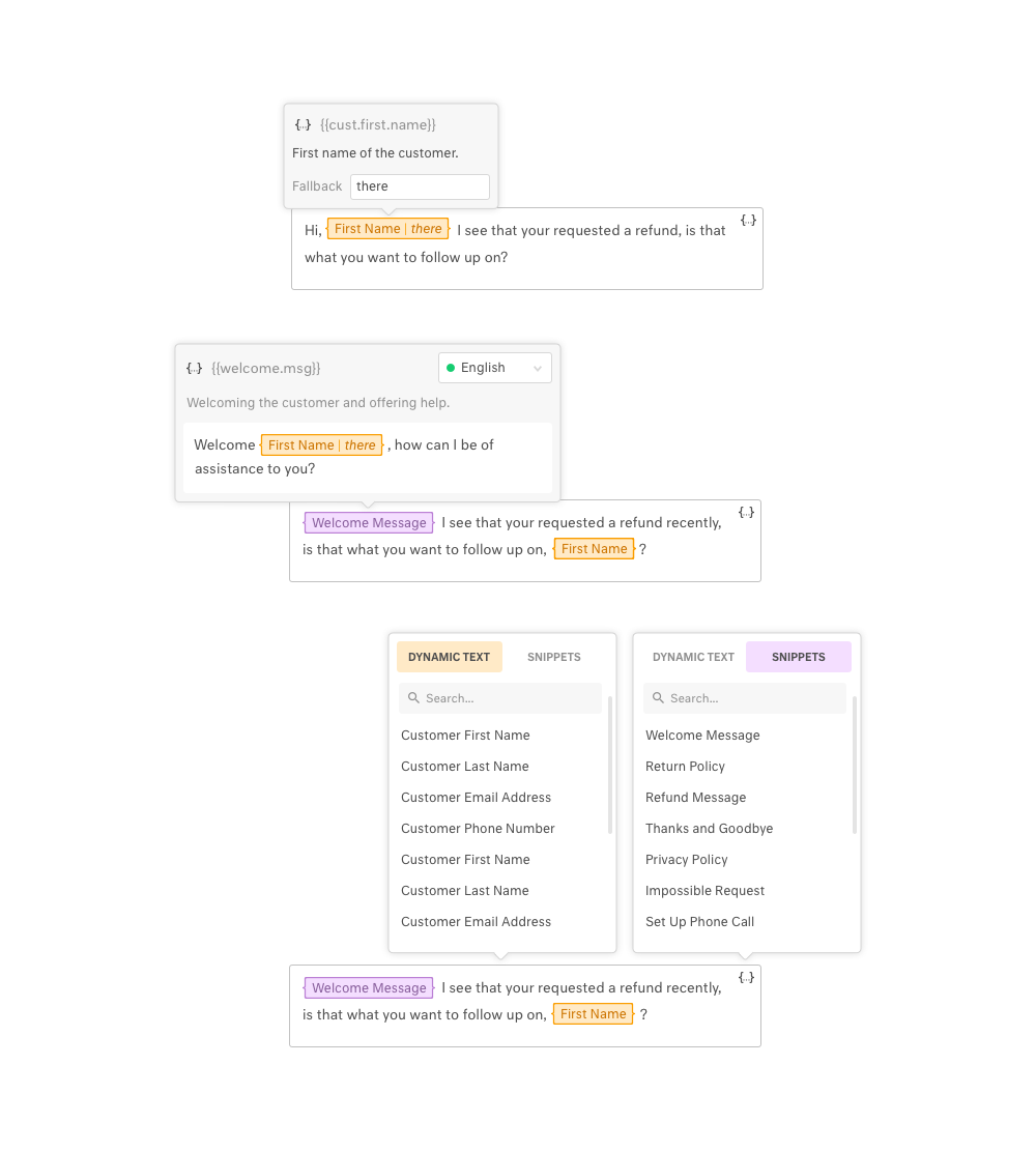Improving efficiency in the main message box with pre-formatted snippets and dynamic tags.